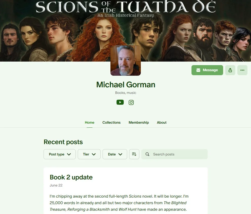 When Novel #2 (and Tales from Tyrconnell #3) is ready, I’ll be publishing chapters early on Patreon for members.